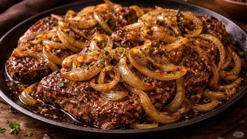 Esse bife acebolado é daqueles que perfumam a casa inteira e chamam todo mundo para a mesa. Aprendi vendo minha mãe preparar rapidinho no dia a dia, sempre dizendo que o segredo estava no ponto da cebola e no cuidado com a carne. Receita simples, mas cheia de memória e afeto.