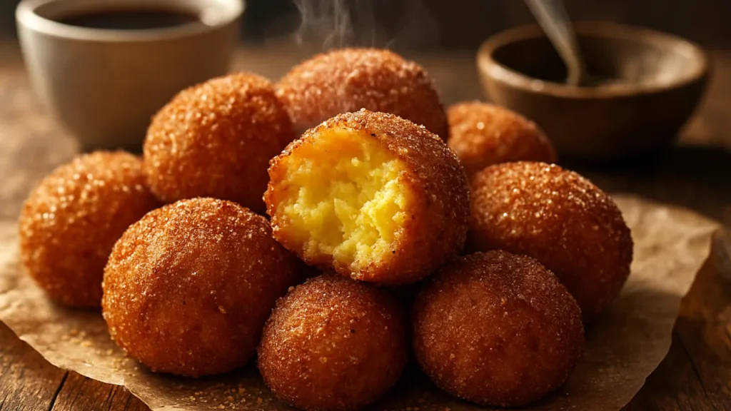Esses bolinhos de fubá para fritar têm gosto de cozinha antiga: massa cheirosa, casquinha crocante e miolo macio. Aqui em casa é daqueles que “some da travessa”, porque ficam prontos rápido e quase não fazem bagunça: uma tigela e uma panela de óleo. O segredo está na textura da massa e na temperatura certa.