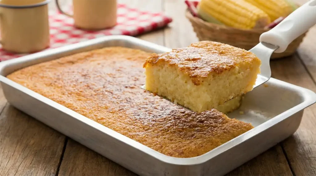 Dica do Chef: leite quente (não fervendo) é o segredo para hidratar a tapioca sem empelotar. Se colocar frio, o bolo pode ficar granulado e “cru” no centro.