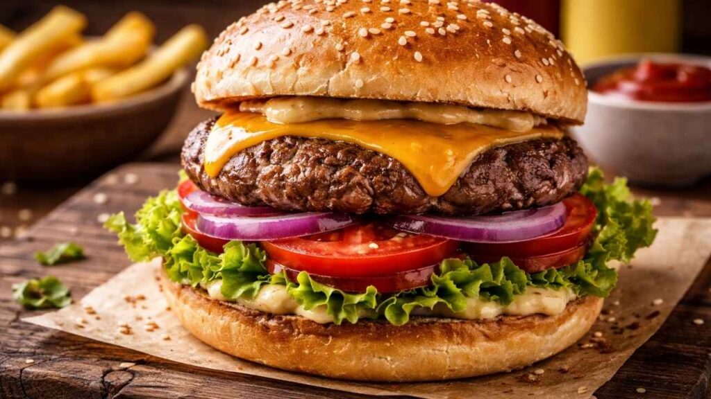Esse hambúrguer caseiro me lembra os almoços de fim de semana em família, quando o cheiro da carne grelhando tomava conta da cozinha. Simples, macio e bem temperado, ele tem aquele jeitinho artesanal que transforma qualquer refeição em momento especial.