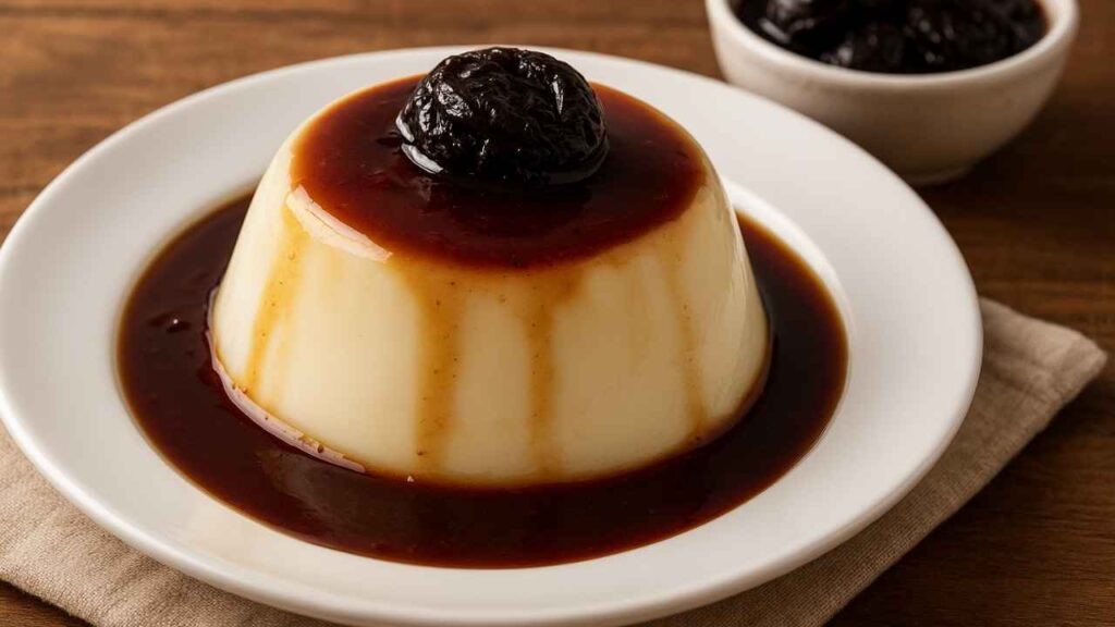 MANJAR BRANQUINHO COM CALDA DE AMEIXA QUE TEM GOSTO DE INFÂNCIA