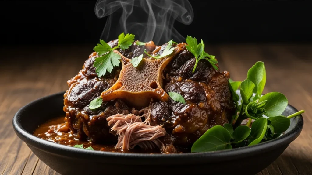 Segredo do caldo brilhante: dourar a rabada em etapas e “raspar a panela” no refogado. Essa crostinha é ouro e substitui horas de cozimento lento.
