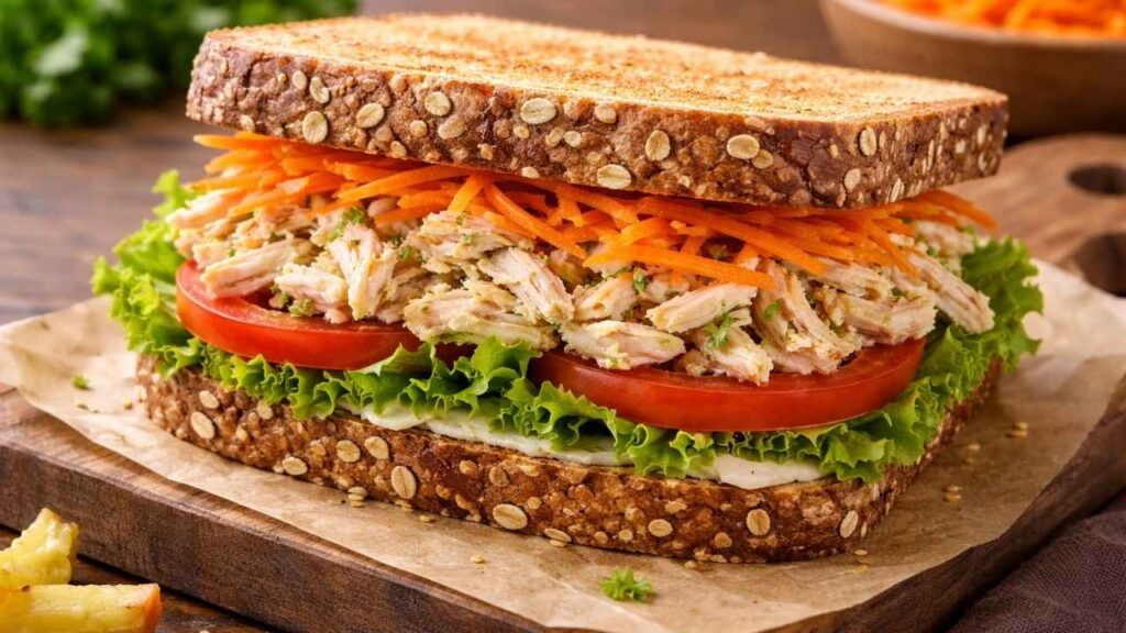 Esse sanduíche fitness surgiu daquelas fases em que a gente decide cuidar mais do corpo, mas sem perder o prazer de comer bem. Lembro de preparar algo simples depois do treino, com ingredientes frescos, sentindo que alimentação também pode ser um gesto de carinho com a gente mesmo.